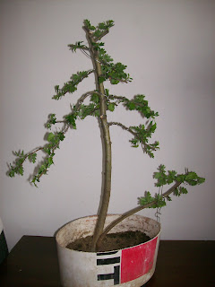 Bagat intr-un ghiveci foarte mare fata de micutul pomisor, a stat 3 ani afara, linistit, iernand sub patura groasa de frunze si acoperit cu zapada, ceea ce nu i-a facut rau deloc. Anul trecut l-am transplantat intr-un ghiveci de bonsai(desi el nu arata asa....), iar anul asta m-am decis sa ma apuc de el, mai ales ca efectiv a explodat frumos in coloritul lui atat de inconfundabil